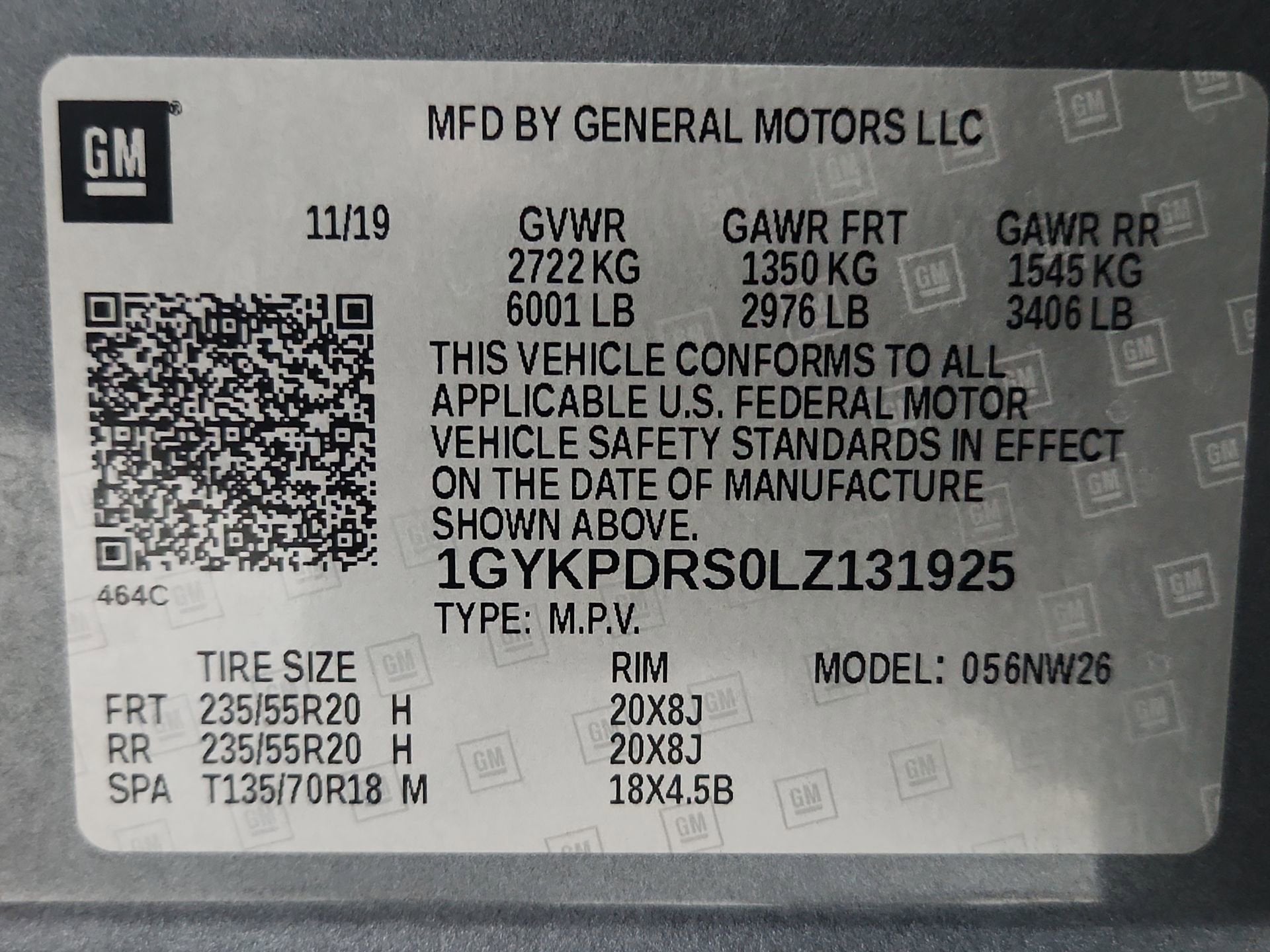 - Tires, P235/55R20 all-season, H-rated, blackwall