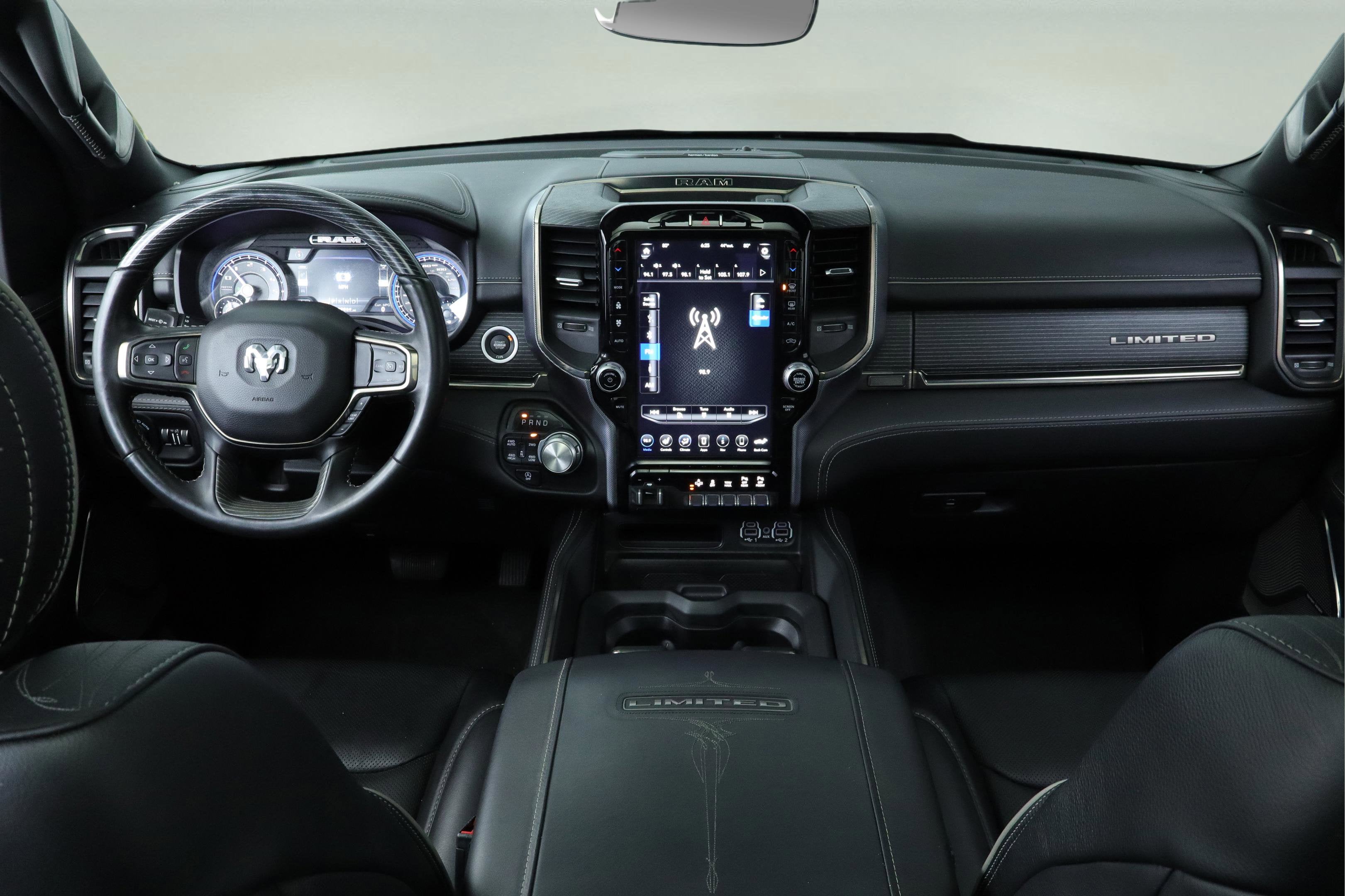Power, presence, and true luxury. This Limited Night Edition pairs blacked out style with a first class cabin and effortless V8 smoothness.Lux ComfortPremium leather trimmed bucket seatsHeated and ventilated front seats plus heated rear seatsDual pane panoramic sunroof that opens the whole cabinPower driver and passenger seats with memory and pedal memoryDual zone automatic climate and a quiet, refined ridePremium TechUconnect 12 with Navigation and a bright 12 inch touchscreenharman kardon 19 speaker premium audioApple CarPlay and Android Auto, Bluetooth® voice commandAuto dimming mirrors, garage door transmitter, HD RadioSmooth and Composed Ride48 volt belt starter generator for seamless starts and added assistAuto leveling suspension with confident controlFour wheel disc brakes and front independent suspensionEveryday ConvenienceRear power sliding window and rear window defrosterTrailer brake controller and tow hooks for ready to work capabilityTri fold tonneau cover to keep gear secure and out of sightSafety and ConfidenceParkView rear back up cameraElectronic Stability Control, Traction Control, multiple airbagsRain sensing wipers and auto high beam headlightsStandout Style22 inch black aluminum wheelsBlack grille surround, black badges, black headlamp bezelsBody color bumpers and sport performance hood for a bold, modern lookSee it today at Bridgeton Automall. Flagship comfort, commanding style, and everyday ease in one stunning Ram 1500 Limited Night Edition.Awards:* Motor Trend Automobiles of the year * JD Power Automotive Performance, Execution and Layout (APEAL) Study