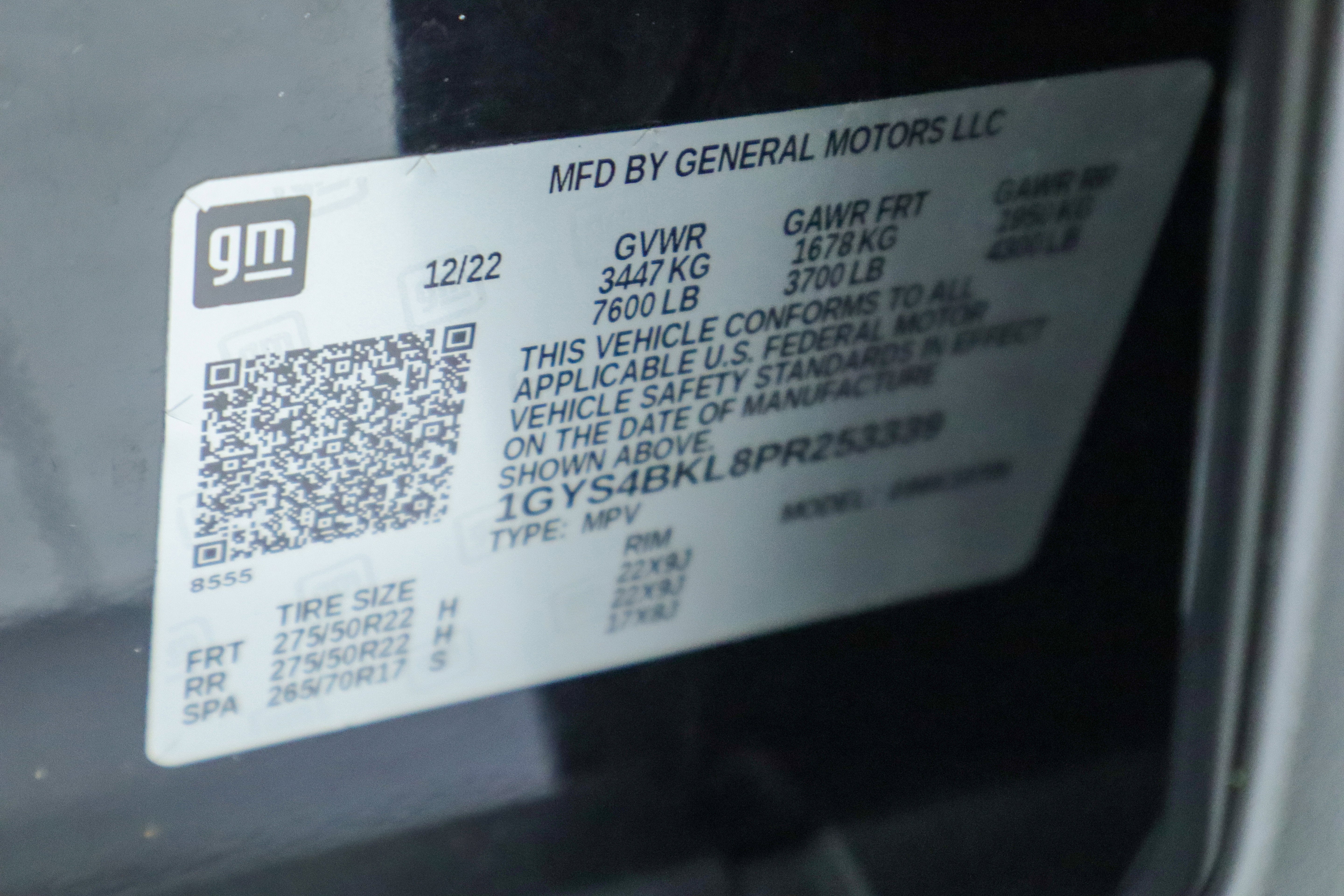 - Tires, 275/50R22SL all-season, blackwall