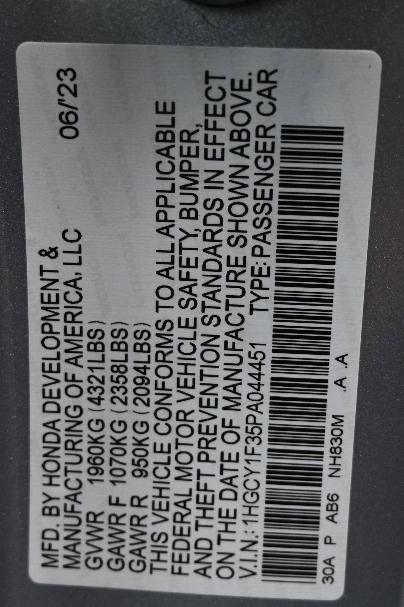 1HGCY1F35PA044451